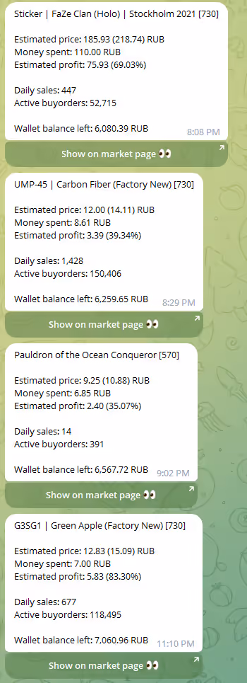 Демо-видео софта Market CS:GO брокер с двукратным замедлением для лучшей видимости деталей. Запись произведена ночью, когда активность на рынке снижена, показывая лишь 40% от полного потенциала софта из-за меньшего количества доступных предметов.